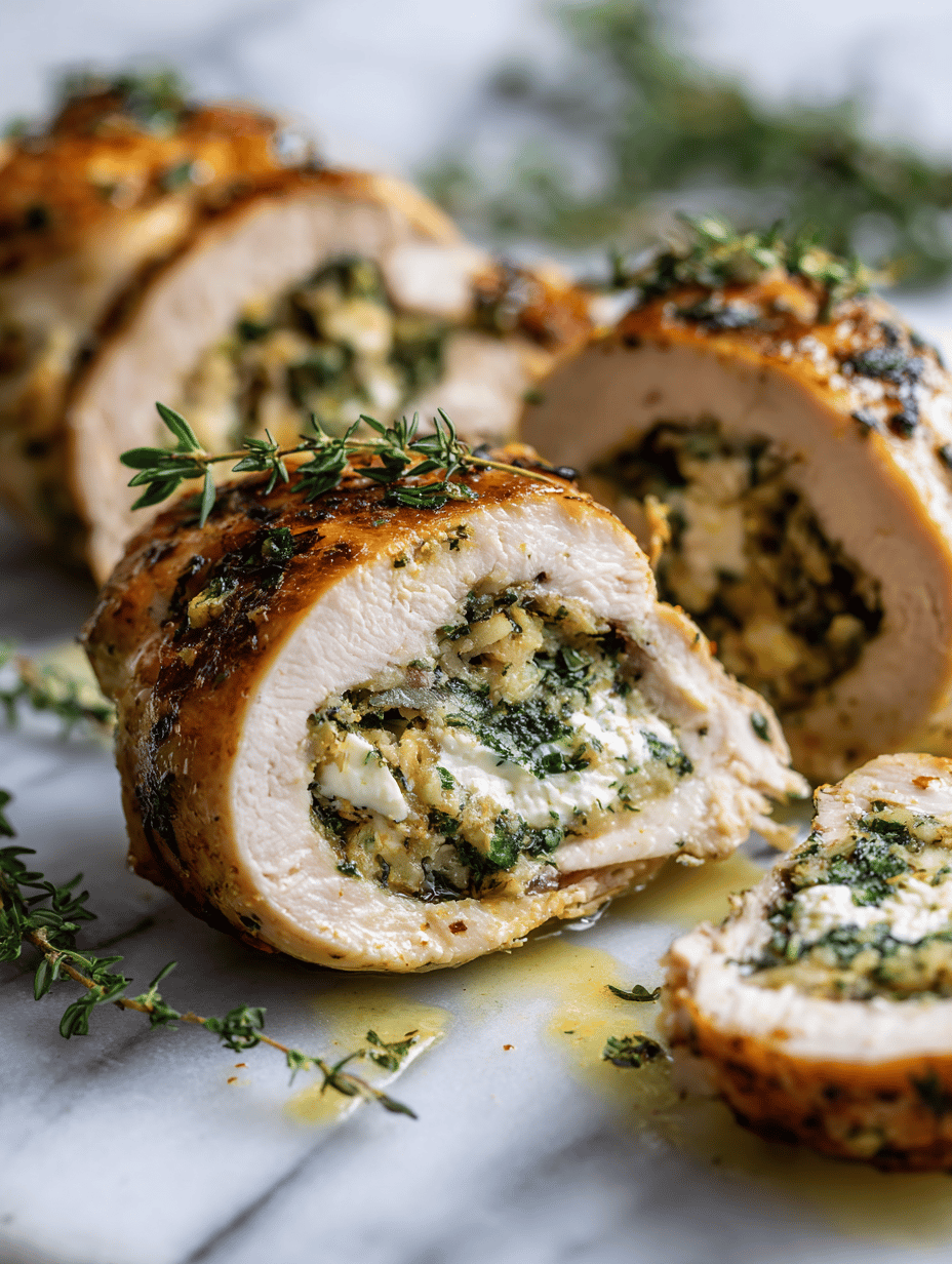 - Slice the chicken breasts to reveal the fragrant, herb-stuffed interior. Serve with a squeeze of fresh lemon and a drizzle of olive oil for brightness.
